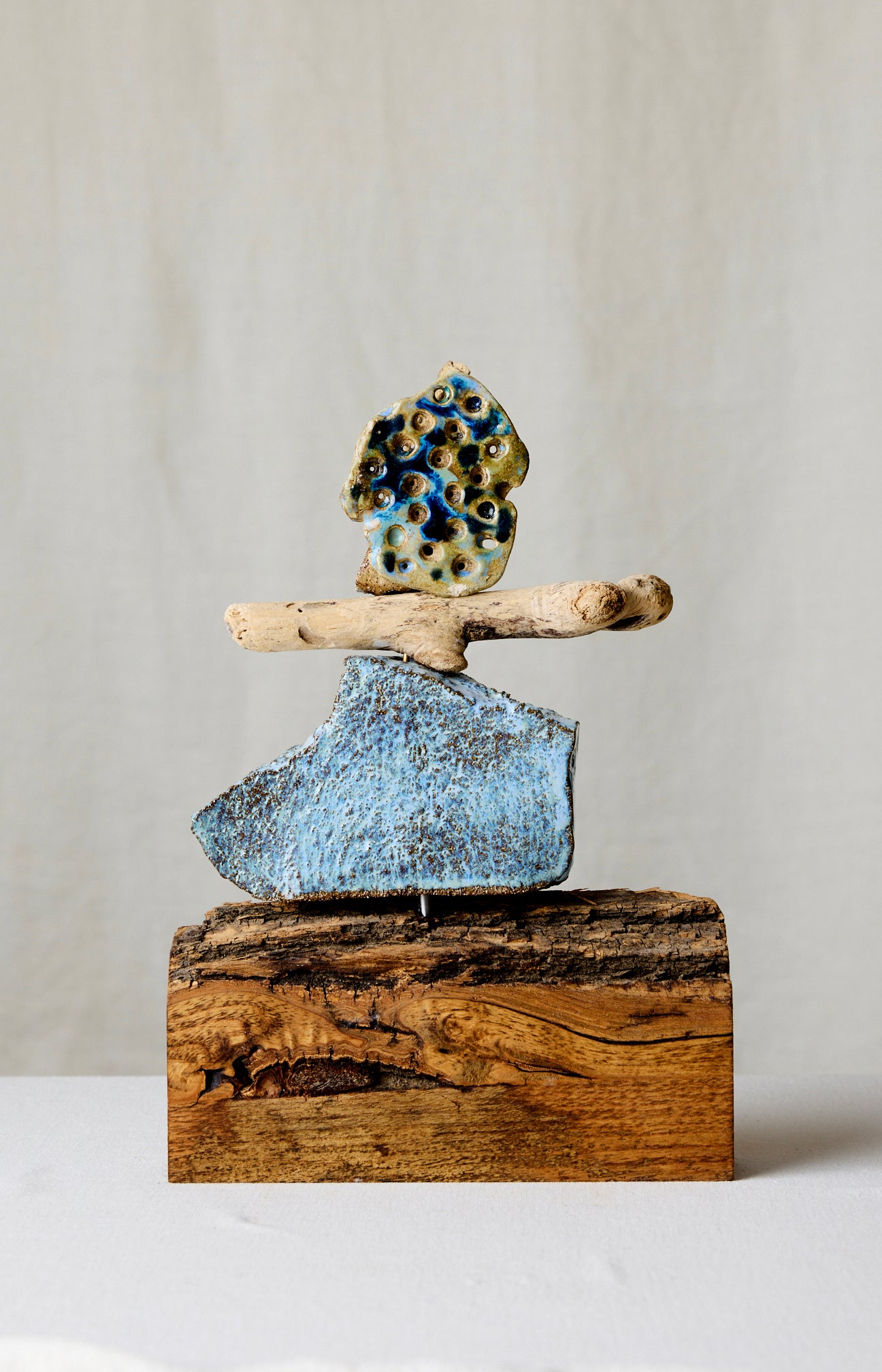 Original sculpture of ceramic and wood